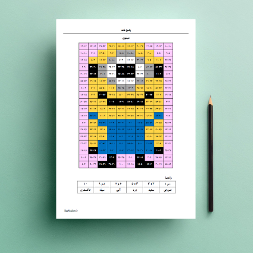کاربرگ رنگ آمیزی مربعی: تفریق اعداد یک و دو رقمی ریاضی دوم ابتدایی