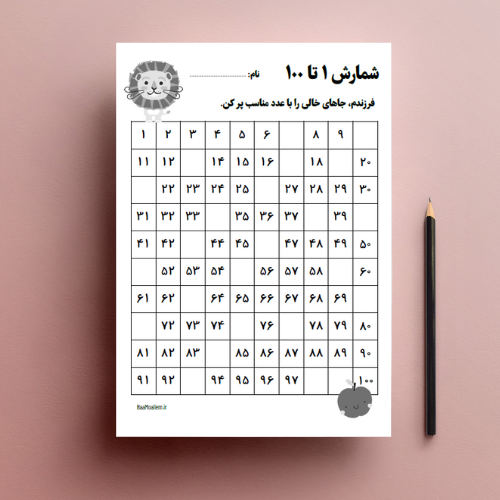 فایل کاربرگ شمارش اعداد ۱ تا ۱۰۰ ریاضی اول ابتدایی