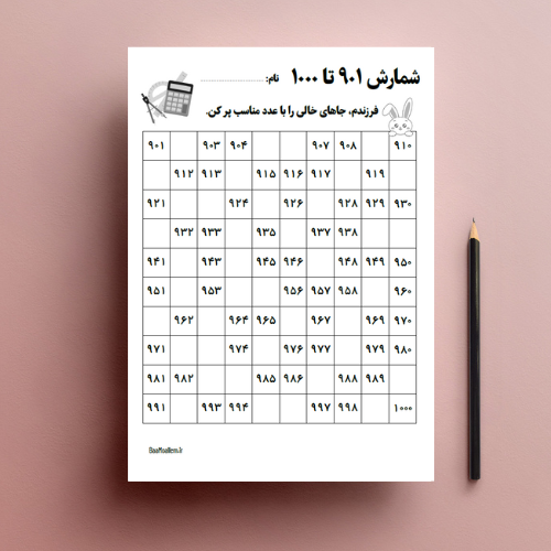 فایل کاربرگ شمارش اعداد ۹۰۱ تا ۱۰۰۰ ریاضی سوم ابتدایی
