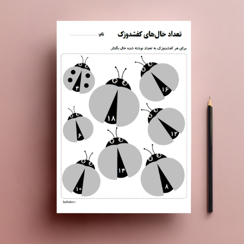 کاربرگ شمارش خالهای کفشدوزک – ریاضی پیش دبستانی و اول ابتدایی